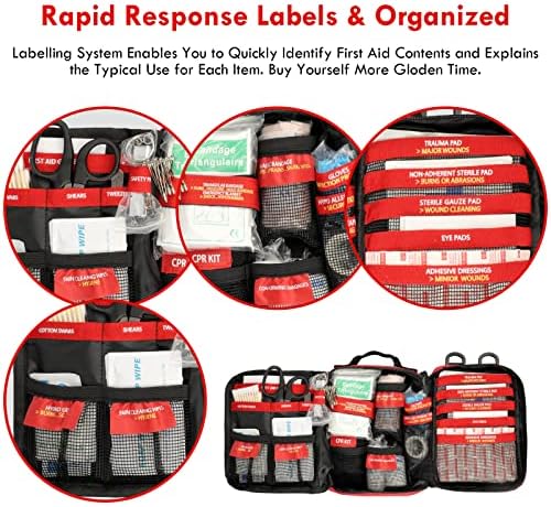 Pasenhome Comprehensive First Aid Kit – Trauma Kit with Labelled Compartments, Emergency Survival Kit Molle System, First Aid Bag for Car, Home, Camping, Travel, Hiking, Office and Cycling