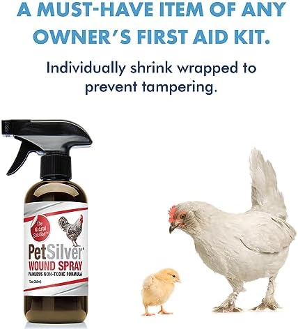 PetSilver Wound Spray Chicken & Rooster Formula with Chelated Silver – Made in USA – Vet Formulated – Natural Pain Free Formula for Ducks, Geese, Poultry – Relief Support for Wounds, Burns – 12 oz