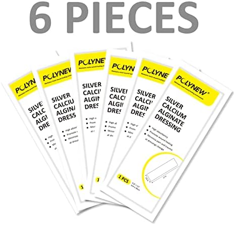 POLYNEW Silver Calcium Alginate Dressing, 0.8″x12″-6 Individual Package Highly Absorbent Strip Wound Dressing for Burns, Ulcers, abrasions, Surgical Wounds, Pressure Sore