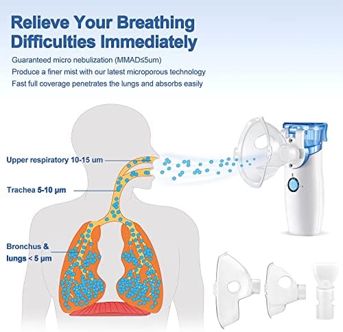 Portable Mesh Nebulizer Handheld Nebulizer for Cough, Portable Personal Cool Mist Steam Inhaler for Sinus Cold,Kids Adults Use