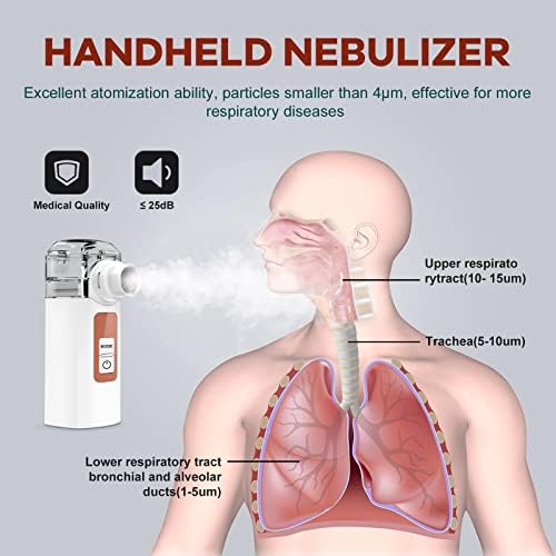 Portable Nebulizer — Take your nebulizer anywhere with ease thanks to its portable, lightweight design. Mini portable nebulizer weight is only about 0.28lb and size 4.5*1.5*1.5 inch. Pocket size and lightweight, easy to carry out or travel, work, office, home, outdoors, airplanes.