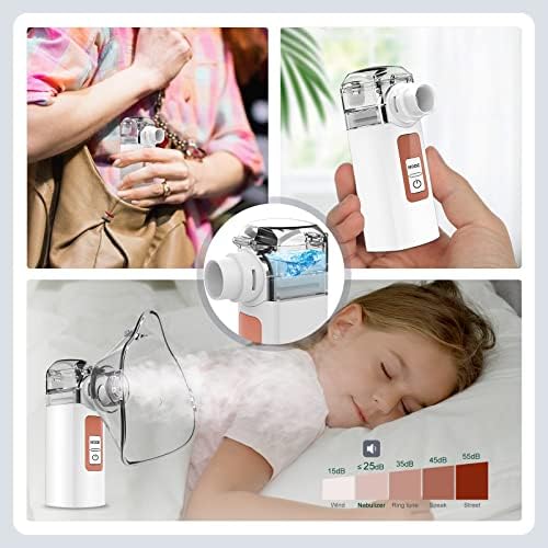 Portable Nebulizer, Nebulizer Machine for Adults Quiet Nebulizer Machine for Kids Silent Mini Handheld Mesh Nebulizer USB/Battery Operated Nebulizers for Travel, Pink