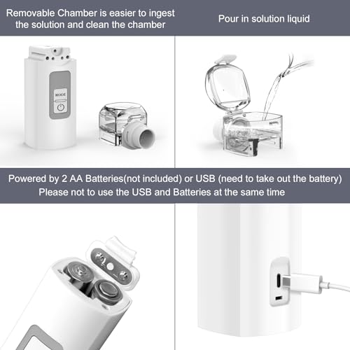 Handheld Nebulizer Power — Portable battery operated nebulizer can be powered by 2*aa batteries(not included) or usb cable *Please not use the usb cable and battery power inside at the same time.* Whether you’re traveling or at home, this nebulizer is perfect for all your needs.