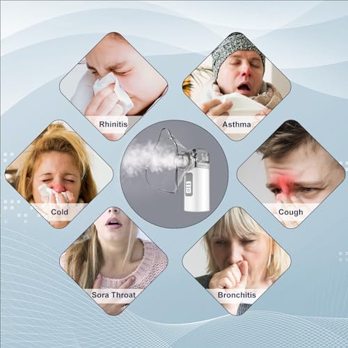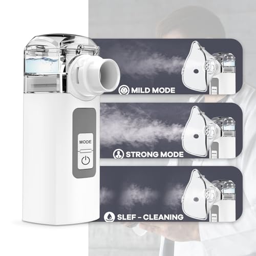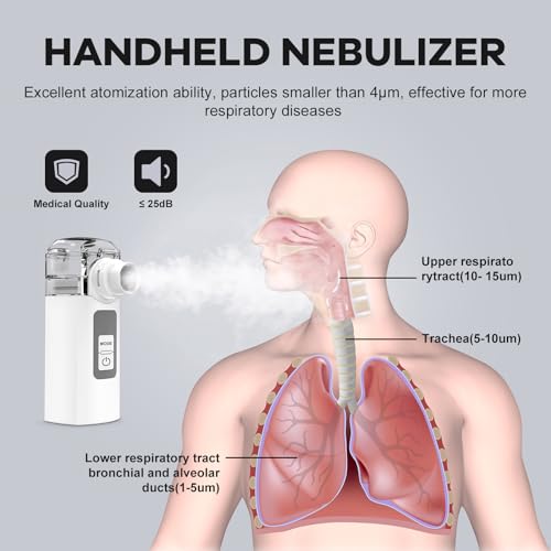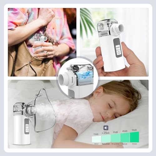 Portable Nebulizer — Take your nebulizer anywhere with ease thanks to its portable, lightweight design. Mini portable nebulizer weight is only about 0.28 pound and size 4.5*1.5*1.5 inch. Pocket size and lightweight, easy to carry out or travel, work, office, home, outdoors, airplanes.