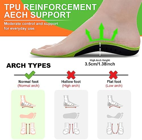 【FOOT PAIN RELIEF&REDUCES MUSCLE FATIGUE】These orthotic insoles provide arch support to reduce the overstretch of the plantar fascia, helping to ease stress and pain caused by flat feet, fallen arches, bunions, low back pain, Achilles tendonitis, and ball of foot pain. They offer moderate control and support for walking and standing, while also providing comfort and cushioning for everyday use, helping to relieve foot pain and reduce muscle fatigue.