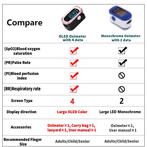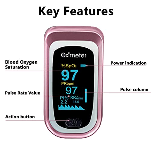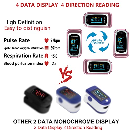Pulse Oximeter Fingertip, 4 Data Pulse Oximeter with Respiration, Pulse Oximeter Fingertip with Respiration SpO2 Pulse Rate Count, OLED Oximetry with Batteries and Carry Bag and Lanyard (Pink)