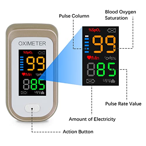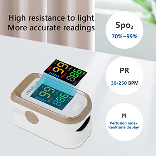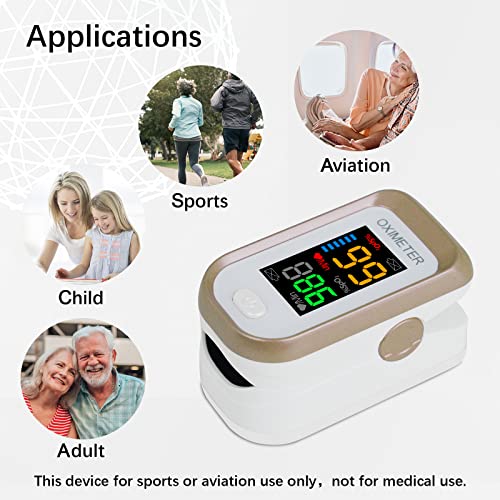 Pulse Oximeter Fingertip Blood Oxygen Saturation Monitor, Oximeter Finger Pulse Oximeter, Portable Oximeter with Lanyard/Luxury Gold