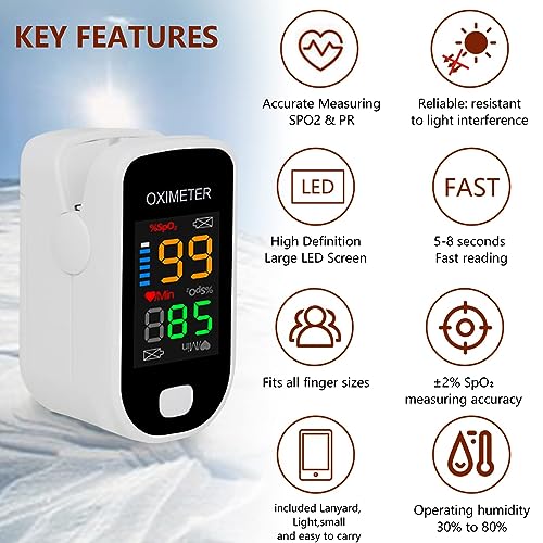 Pulse Oximeter Fingertip, Oximeter Finger with Pulse, Oxygen Meter Finger Pulse Oximeter, Blood Oxygen Saturation Monitor, Large LED Screen Oximetry with Lanyard (White/Black)