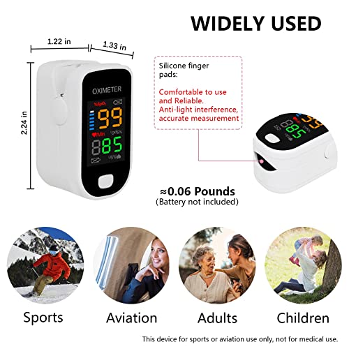 【Fits all kinds of fingers】Because the oximeter uses soft natural silicone material, it fits all kinds of finger sizes. Widely used in sports, aviation, adults, elderly, children and teenagers. This device is for sports or aviation use only, not for medical use. You can measure your blood oxygen saturation and PR after sports, aviation, climbing, skiing, biking, running and other exercises. Check your body parameters indicators anytime and anywhere.
