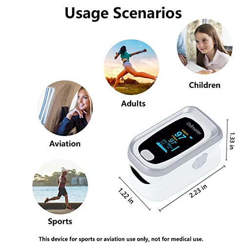 【Portable Design Widely used】Light-weight and compact, easy to handle and to carry with you for results at home or outdoors. device is for exercise only, home, travel and aviation use only and is not intended for not medical use. sports enthusiasts take it with you to check your Blood oxygen saturation after flying, skydiving, running, hiking, cycling, swimming, climbing, skiing, high altitude climbing. or you can easily check your oxygen levels at home.