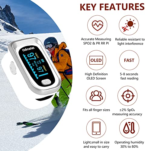 Pulse Oximeter Fingertip, Oxygen Meter Finger Pulse Oximeter, Oximeter Blood Oxygen Saturation Monitor, Accurate SpO2 Pulse Reading, Pulse OX with Carrying Bag and Lanyard (Silver-White)