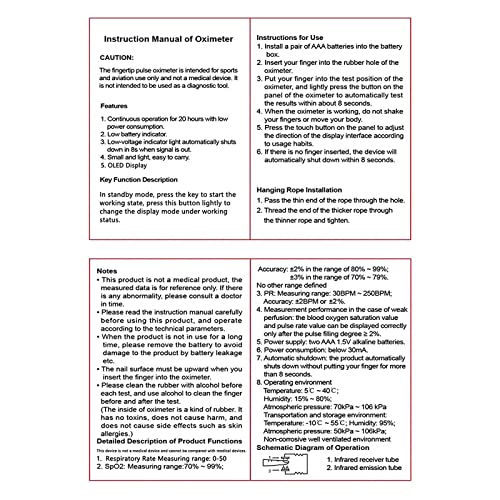 ❤️ Portable and Durable – The finger pulse oximeter is lightweight, portable, and composed of high-density ABS plastic. Its compact size and portability make it simple to use and carry. This device for sports or aviation use only, not for medical use.