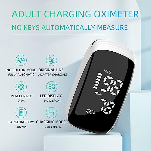 Pulse Oximeter Fingertip, Pulse Oximeter with Rechargeable, Oxygen Meter Finger Pulse Oximeter, Fingertip Blood Oxygen Saturation Monitor Rechargeable, Accurate Fast SpO2 Reading for Sports (White)