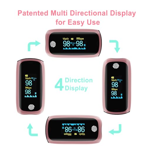 Pulse Oximeter Rechargeable, Oxygen Monitor Fingertip, Pulse Oximeter with Respiration, Respiratory Rate Monitor, Oximetry for Athletic Aviation Wide Use (Pink)