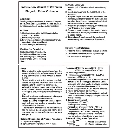 【Widely used】athletic & aviation pulse oximeters is widely used for mountaineers, skiers, coaches, pilots and other sports enthusiasts. The Portable oximeter is small in size, Innovative with keyless design and respiratory rate. The mini pulse oximeter can accommodate a variety of finger sizes from teenagers to the elderly and children, oxygen meter finger pulse oximeter is easy to carry outside. The device is for sports and aviation use only, not for medical use.