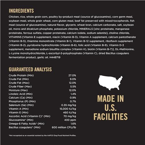 Make mealtime a tasty and healthy experience with Purina Pro Plan Brand Dog Food Shredded Blend Weight Management Chicken and Rice Formula adult dry dog food. This high-quality formula with real chicken as the first ingredient helps deliver the nutrition he needs and the flavor he loves, while the combination of hard dog food kibble and tender shredded pieces provides an enticing texture. With 15 percent less fat than our Pro Plan ESSENTIALS Shredded Blend Chicken and Rice Formula for Adult Dogs, this weight management dog food gives your dog a meal you can feel good serving. The natural prebiotic fiber in our dog dry food nourishes the beneficial bacteria in your dog’s intestinal tract, working to maintain a good balance, and guaranteed live probiotics help support his digestive health. With 100 percent complete and balanced nutrition and high-quality ingredients, this Purina Pro Plan SPECIALIZED weight control dog food gives your adult dog a mouthwatering meal while supporting his health and wellness.
