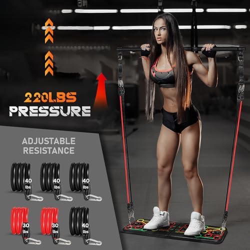 Push Up Board Home Gym Portable System Compact, Pilates Bar & 20 Fitness Accessories with Resistance Bands Ab Roller Wheel Strength Training Equipment Full Body Workout for Men and Women, Best Choice