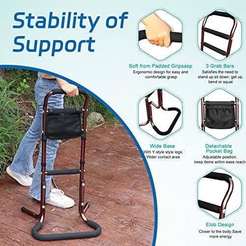 REGMICS Chair Stand Assist for Seniors with Storage Pocket, Adjustable Height Cane, Stand Assist for Elderly Sit to Stand, Portable Mobility Aids