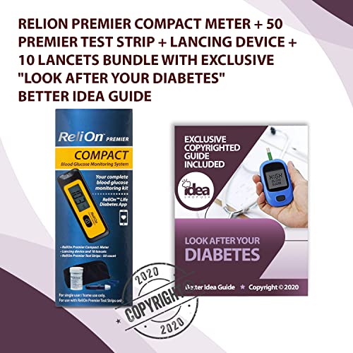ReliOn Premier Compact meter + 50 Premier Test Strip + Lancing Device + 10 Lancets + “Look After Your Diabetes” – Better Idea Guide” | Premier Compact Blood Glucose Monitoring System