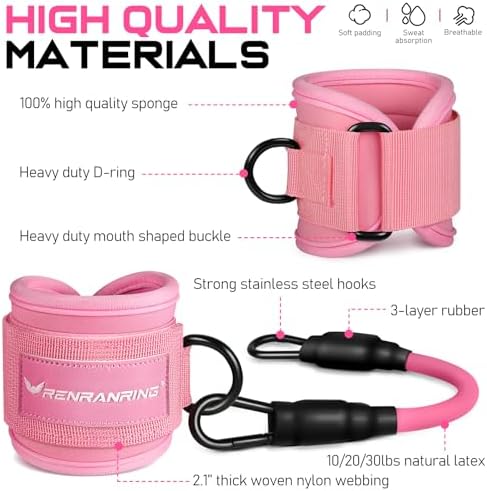 RENRANRING Ankle Resistance Bands with Cuffs, Glutes Workout Equipment, Ankle Bands for Working Out, Butt Exercise Equipment for Women Legs and Glutes (Pink)