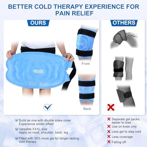 REVIX 20‘’ XXXL Knee Ice Pack Wrap Around Entire Knee After Surgery, Large Ice Pack for Knee Pain Relief, Reusable Ice Wraps for Knee for Replacement Surgery, Swelling, Sports Injuries