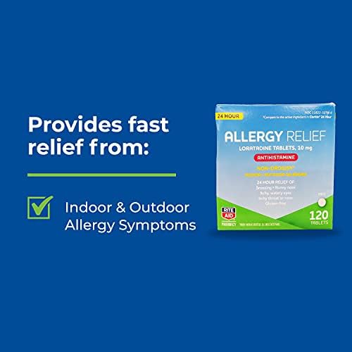 Rite Aid 24 Hour Loratadine 10 mg Allergy Relief Tablets, 10mg – 120 Count | Non-Drowsy Allergy Pills, Medicine