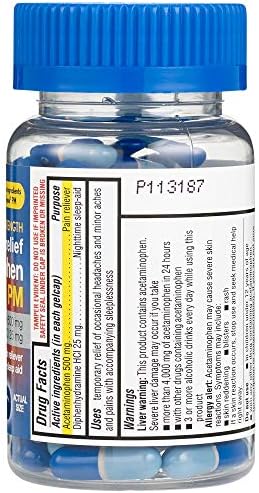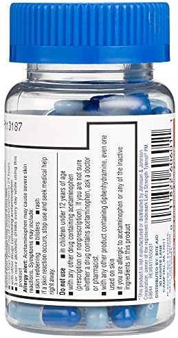 PAIN RELIEVER + NIGHTTIME SLEEP AID: Each Rite Aid gelcap contains acetaminophen extra strength 500mg to quickly and effectively relieve your pain, plus it contains diphenhydramine HCI 25mg, a nighttime sleep aid for adults, so you can sleep at night.
