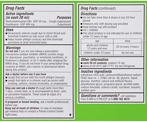 Coughs and chest congestion have met their match. Robitussin Maximum Strength Cough Plus Chest Congestion DM Cough Suppressant and Liquid Expectorant relieves coughs and clears mucus so your voice can be heard. This non-drowsy cough medicine for adults not only works to control your cold and cough symptoms, it also thins and loosens mucus to help make your coughs more productive. The strong, soothing action of max-strength Robitussin Cough Syrup comes in a great raspberry flavor. For adults and children ages 12 and over, Robitussin Maximum Strength Cough Plus Chest Congestion DM should be taken in 20 mL doses every four hours; do not take more than six doses in any 24-hour period. Trust Robitussin for fast, powerful cough and cold relief. For nighttime cough relief, try Robitussin Maximum Strength Nighttime Cough DM.