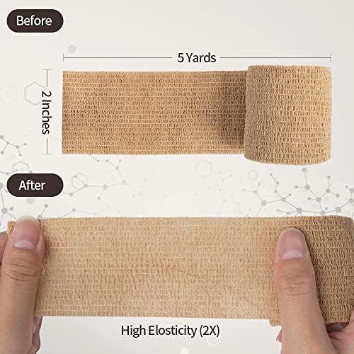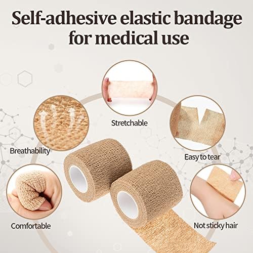 Self Adhesive Bandage Medical Tape Elastic Bandages Flexible Breathable First Aid Nonwoven Roll Stretching Exercise, Ankle Sprains and Swelling,Sports 2″ x 5 Yards,12 Pack