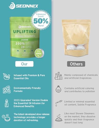 SEONNIX Shower Steamers Aromatherapy 15 Pack, Jasmine Shower Bombs with Natural Essential Oils, Stress Relief & Luxury Self Care, Shower Tablets – Christmas Gifts Stocking Stuffers for Women and Men
