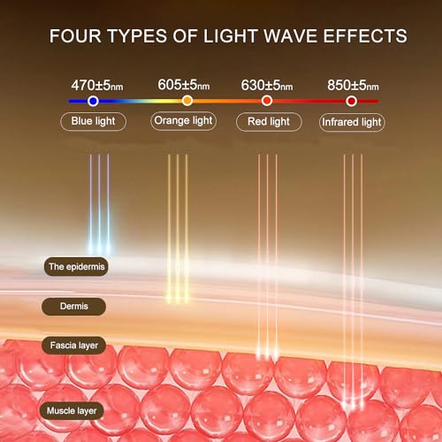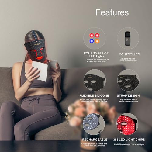Multifunctional and Customized Skincare: Avorla LED face mask has 4 different types of lights that each target a specific skin issue. It allows you to customize your treatment to suit your unique needs. The invisible Infrared light (850±5nm) penetrates deeper into the skin which helps to enhance the overall effectiveness of the treatment. The Red LED light (630±5nm) reduces wrinkles. The Blue LED light (465±5nm) is excellent for combating acne and breakouts.