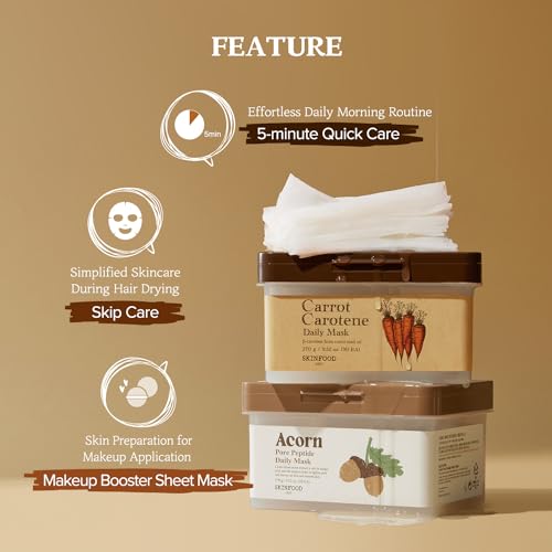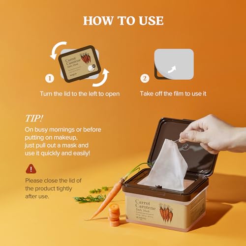 SKINFOOD Carrot Carotene Daily Mask 9.52 oz (30EA) – Soothing, Quick Hydrating, Sensitive Skin, Carrot seed oil, Relieving Redness