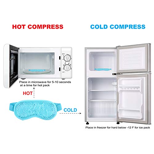 【EASY TO USE】Sealed the eye mask in a plastic bag and then place in fridge for ice pack. Chill it for 1-2 hours , or freeze it for 30 minutes.Or place in microwave for 10 seconds at a time for warm mask. This gel pack can stay cold for 15-20 minutes, and the best therapy time is approximately 15 minutes recommended by doctor and therapist.