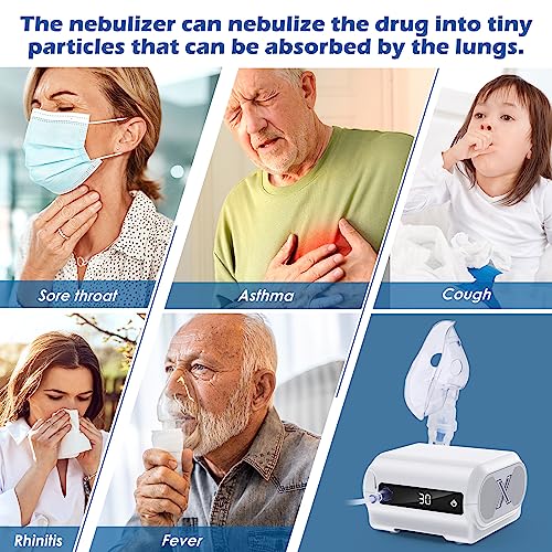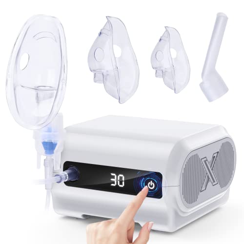 Smart Nebulizer Machine – Low Noise Nebulizer for Adults & Kids with Timer Digital Display and 3 Reusable Masks, Portable Nebulizer for Breathing Treatment, Home Use and Travel