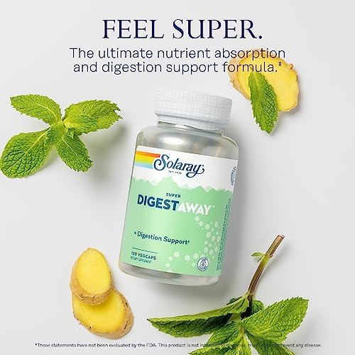 SOLARAY Super Digestaway Digestive Enzymes – Pancreatin, Papain, Ginger, Pepsin, Betaine HCl, Aloe Vera, and More – Digestion & Nutrient Absorption Support – Lab Verified – 180 VegCaps