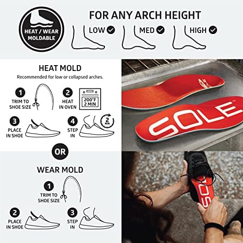 CUSTOM SUPPORT SUITABLE FOR ANY ARCH HEIGHT – custom heat moldable meaning you can get custom support for your unique feet – we recommend people with low arches and flat feet heat mold their insoles in the oven at home following simple heat molding instructions for best results – people with high arches will enjoy the support straight out of the box