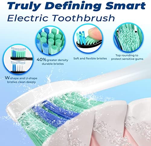 【Portable Travel Electric Toothbrush】 The brush head adopts high-quality DuPont bristles from the United States and Pedex discolored bristles from Germany, with a wavy curved surface. Equipped with 4 U-shaped and 2 W-shaped replaceable brush heads, it can be used for 18 months. IPX7 waterproof technology, rechargeable sonic electric toothbrush with intelligent electricity prompt, ultra long endurance to meet the needs of travel.