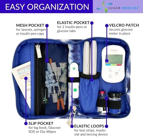 Sugar Medical Diabetes Supply Case | Diabetic Care Products | Diabetic Supplies Travel Case | Diabetic Supply Bag | Glucose Meter Case | Diabetic Bags for Supplies | Glucometer Case | Di(Blue Tie Dye)