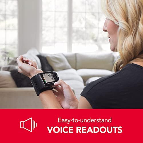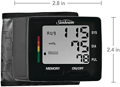 Sunbeam Easy & Accurate Clinically Tested Wrist Blood Pressure Monitor with Voice Broadcast Technology, at Home Health, Adjustable Cuff, Stores 90 Readings, Batteries Included