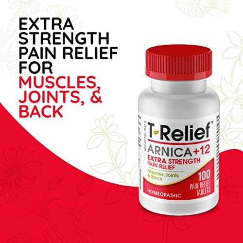 T-Relief Extra Strength Pain Relief Arnica +12 Natural Relieving Actives for Back Pain Joint Soreness Muscle Aches & Stiffness, Whole Body Fast-Acting Relief for Women & Men – 100 Tablets