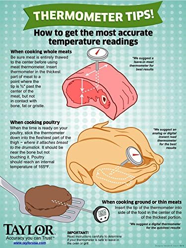 Taylor Instant Read Analog Meat Food Grill BBQ Cooking Kitchen Thermometer with Red Pocket Sleeve for Calibration, 1 inch dial, Stainless Steel