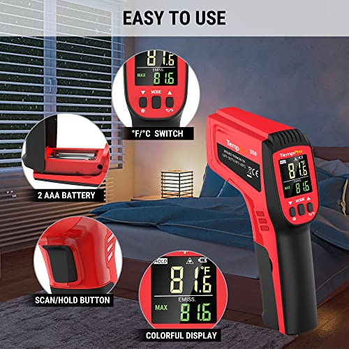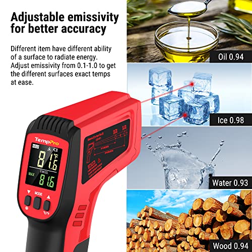 TempPro D50 Dual Laser Infrared Thermometer Gun for Cooking with Adjustable Emissivity & MAX/MIN/AVG Display, Laser Thermometer for Cooking Industrial Use (NOT for Human)