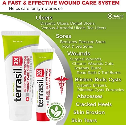 Terrasil Wound Care – 3X Faster Healing, Infection Protection for Bed sores, Pressure sores, Diabetic Wounds, Foot, Leg ulcers, cuts, scrapes, Burns – 50gm Tube