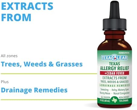 TexaClear All Season Allergy Relief Drops Homeopathic, Non-Drowsy, Safe, Effective Remedy – Extracts from Trees, Weeds & Grasses + Drainage Remedies, Made for All Zone Allergy Relief – 2oz