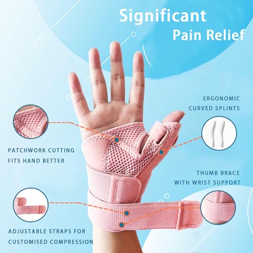 Thumb Splint with Wrist Brace, Thumb Brace for Arthritis Pain and Support, Tenosynovitis, CMC Joint Repetitive Injuries, Thumb Stabilizer Fits Both Right Left Hand (Pink)