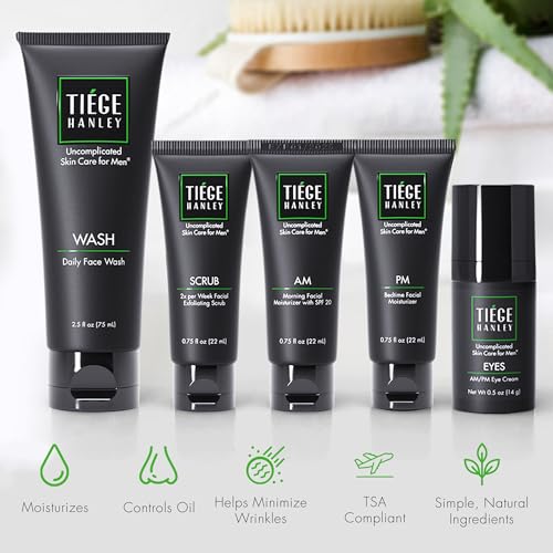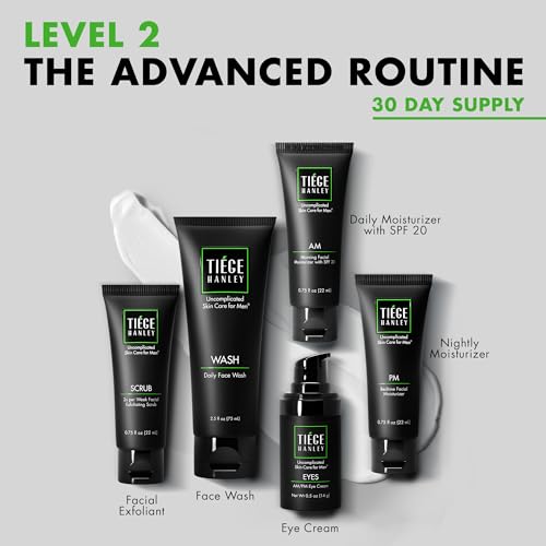 Tiege Hanley Mens Skin Care Set, Advanced Skin Care Routine for Men (System Level 2) – Face Wash Kit for Fines Lines – Men’s Skincare Set Includes Face Wash, Facial Scrub, Moisturizer, & Eye Cream