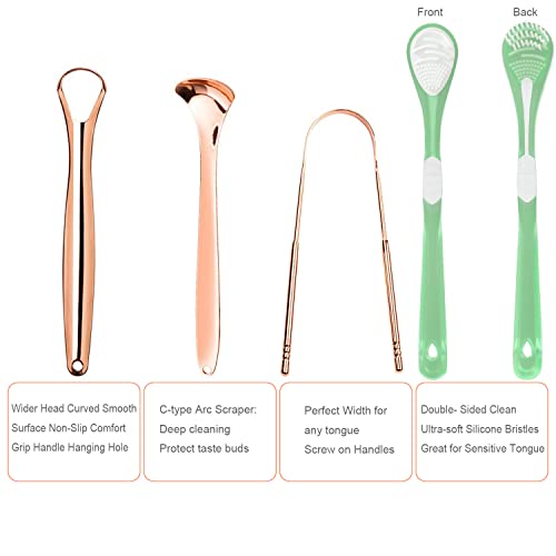 Improve Oral Health, Say Bye To Bad Breath: Our four different tongue scrapers and brushes suit both small mouths and large mouth the best remedy to reduce bad breath by cleaning your tongue and removing food residue, improving your confidence and better overall health