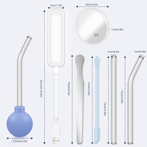 Tonsil Stone Removal Kit, 10 Pack Tonsil Stone Remover Vacuum Tonsil Stone Cupping Tool with 5X Magnifying Mirror, Oral Lamp, for Tonsil Stone Removal