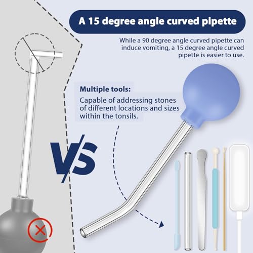 Comprehensive, Versatile Kit: The Aurorangel Tonsil Stone Cupping Tool is the ultimate solution, featuring 1 x PVC suction ball; 2 x suction probe in different shapes; 3 x unique squeeze tools; 1 x tongue plate; 1 x 5X magnifying mirror and 1 x dental light. Our versatile attachments tackle tonsil stones of various positions and shapes effectively. Say goodbye to a single, limited tonsil stone removal tool.