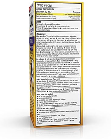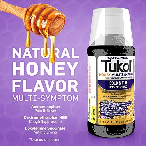 Fast Acting and Effective: This honey-flavored multi-symptom syrup with no added alcohol features acetaminophen for aches and pains, dextromethorphan to relieve coughs and the antihistamine doxilamine succinate for occasional sleeplessness